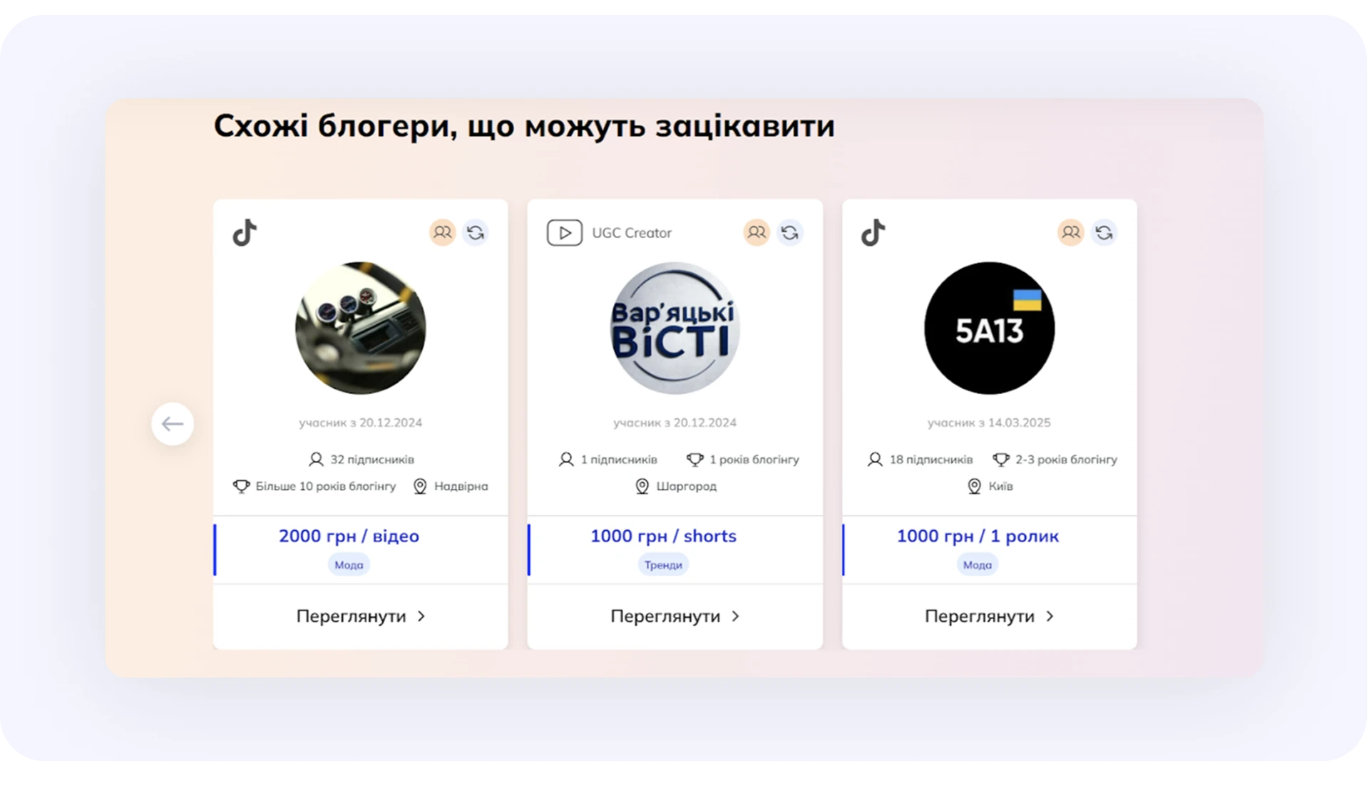 Якщо ви блогер, рекламодавець або фахівець, який корисний як блогерам, так і рекламодавцям — саме час розпочати свій шлях із платформою. Чому? Тому що кожен із вас отримає простий та прозорий інструмент для знаходження взаємовигідних партнерств у сфері інфлюенс-маркетингу, заощаджуючи час та мінімізуючи ризики невдалої співпраці. Також ми підготували щось індивідуальне для кожного з вас.